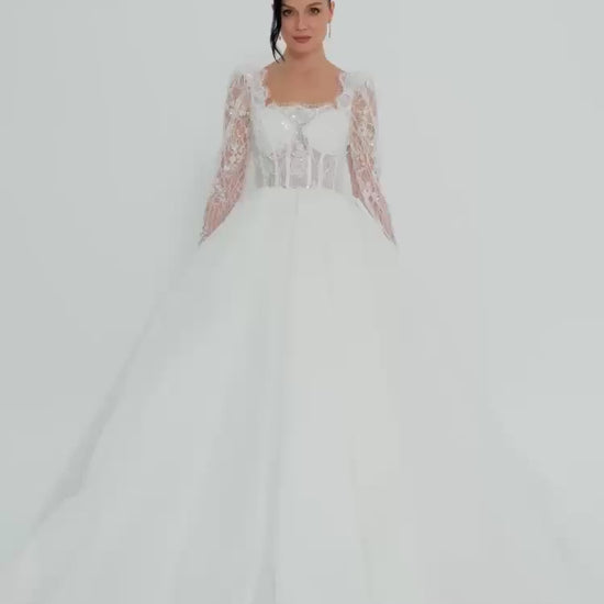 Long Sleeve Maxi Tulle Regular Wedding Dress Unit Price: €455