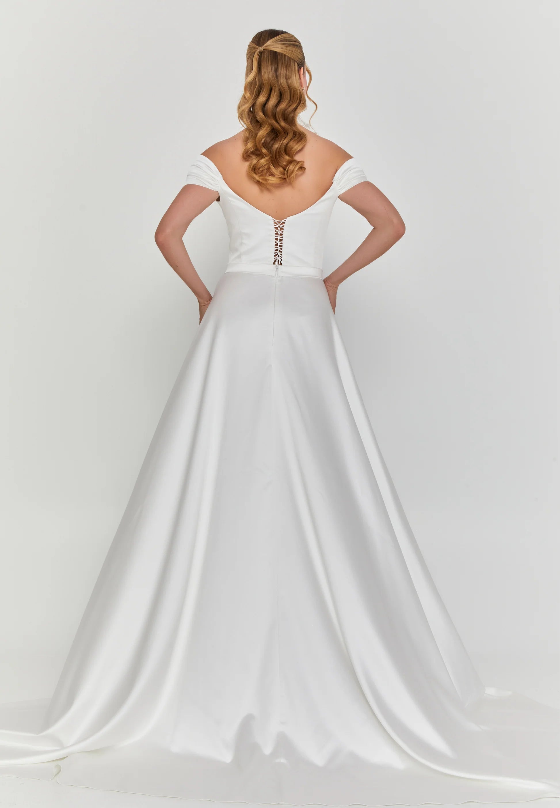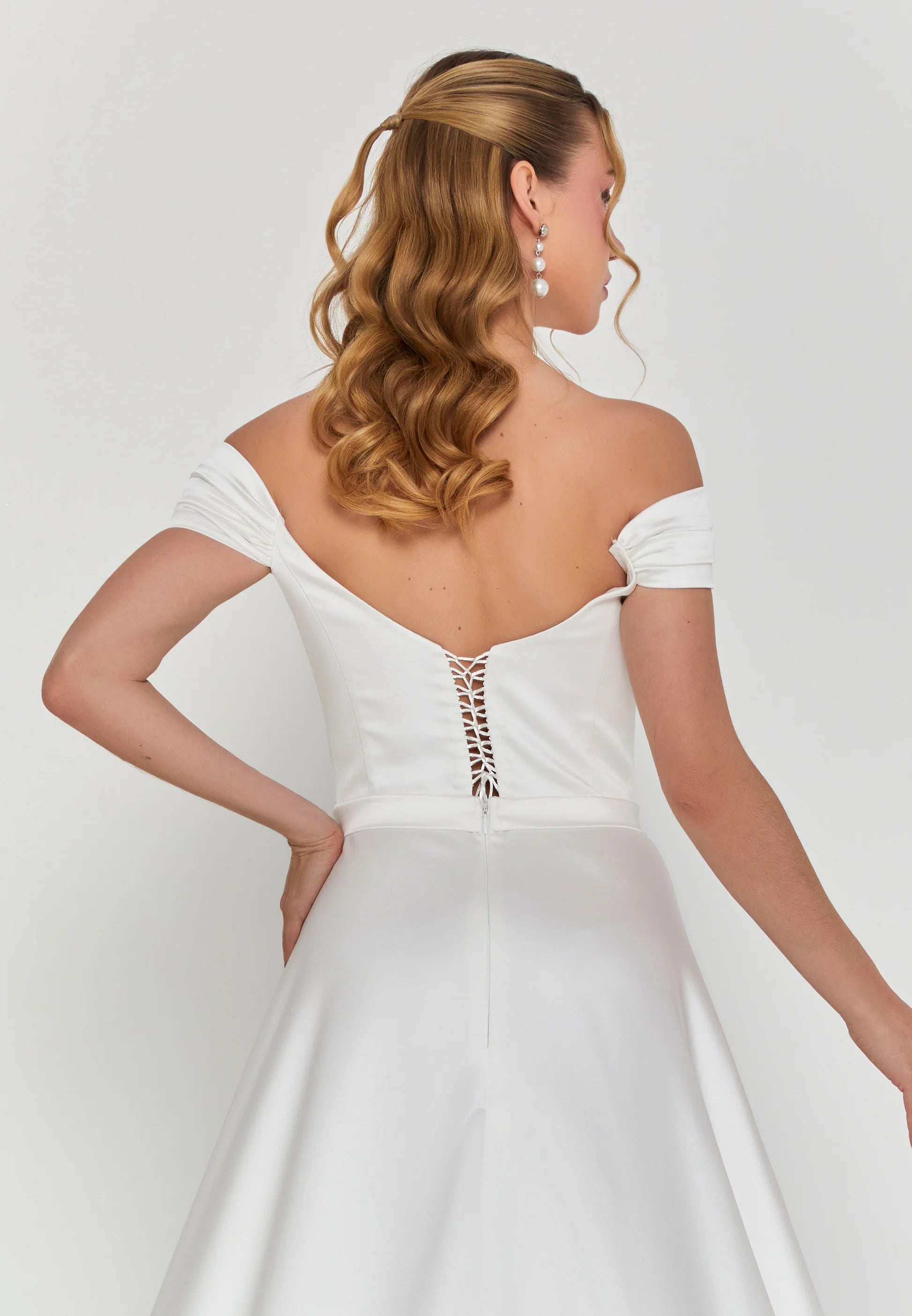 Off Shoulder Maxi Satin Regular Wedding Dress Unit Price: €355