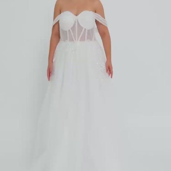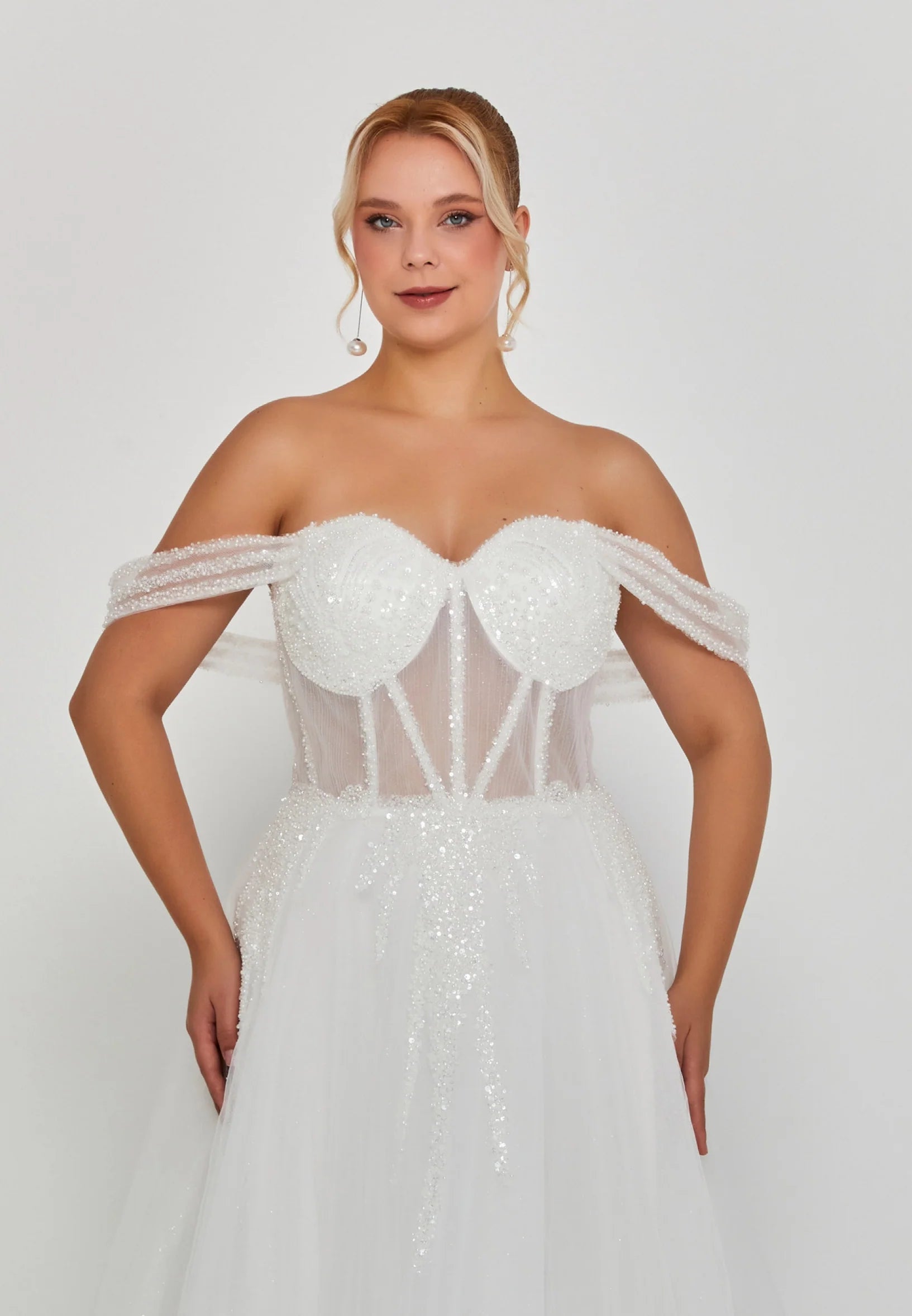 Off Shoulder Maxi Tulle Plus Size Wedding Dress Unit Price: €320