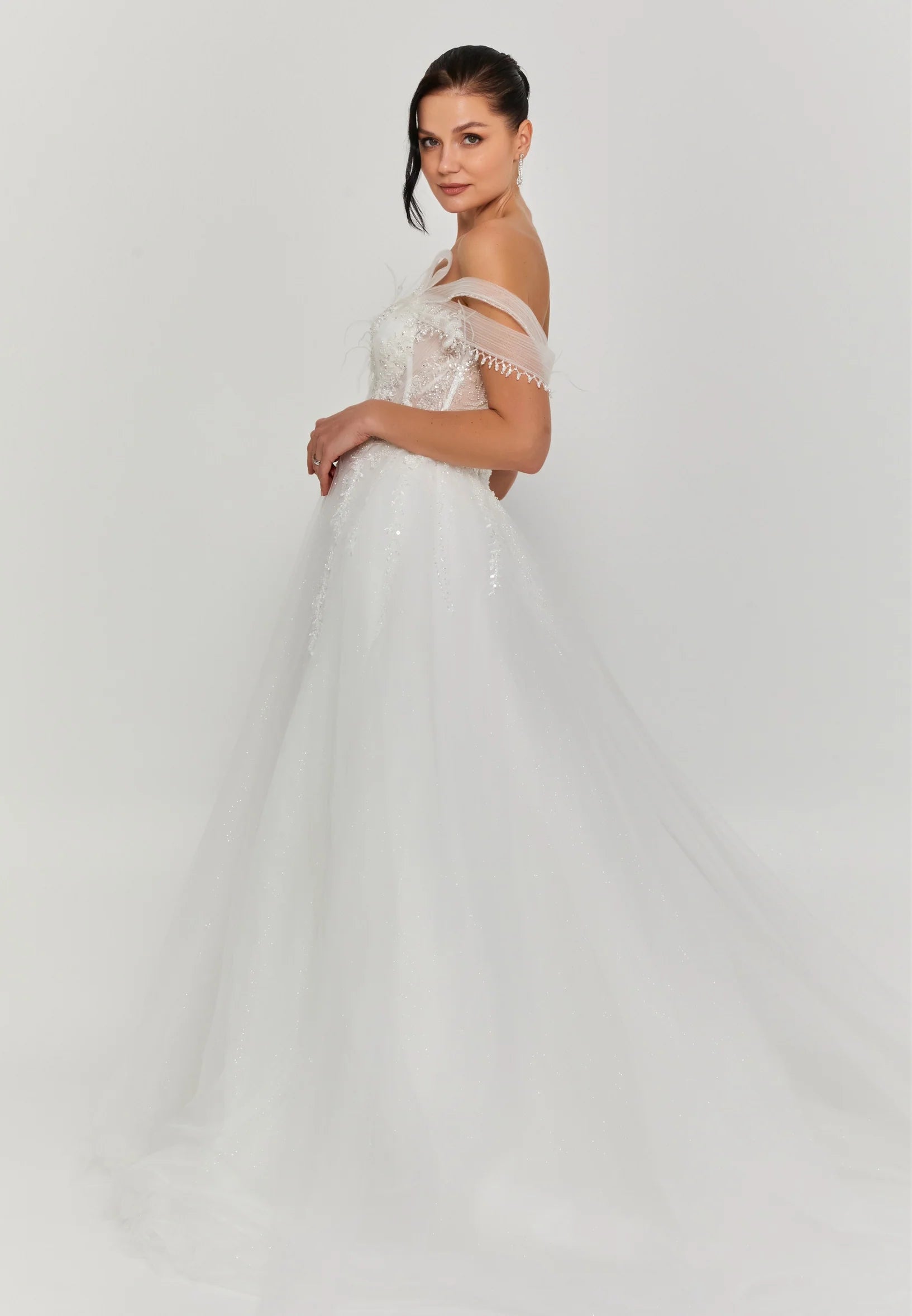 Off Shoulder Maxi Tulle Regular Wedding Dress Unit Price: €200