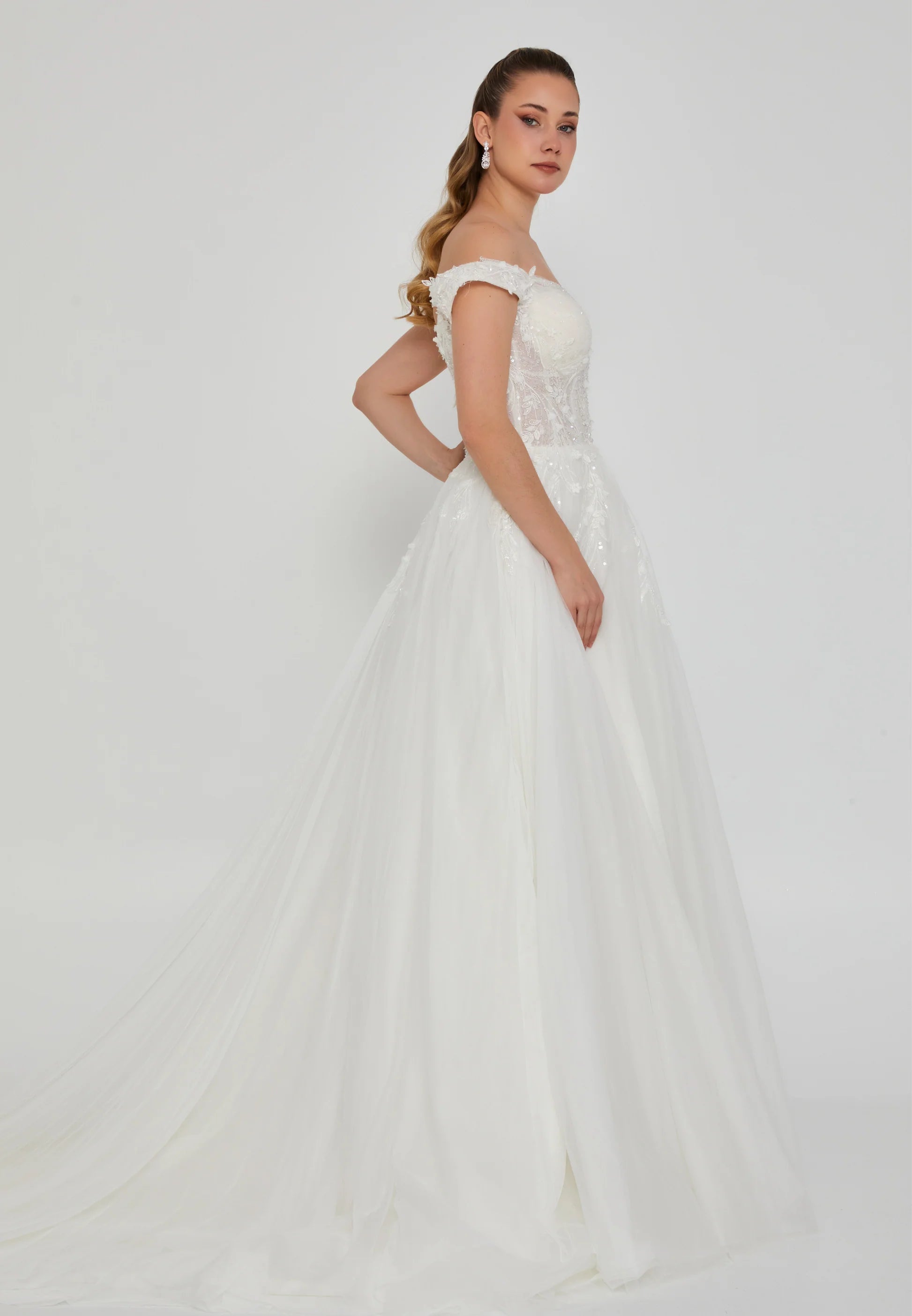 Off Shoulder Maxi Tulle Regular Wedding Dress Unit Price: €300