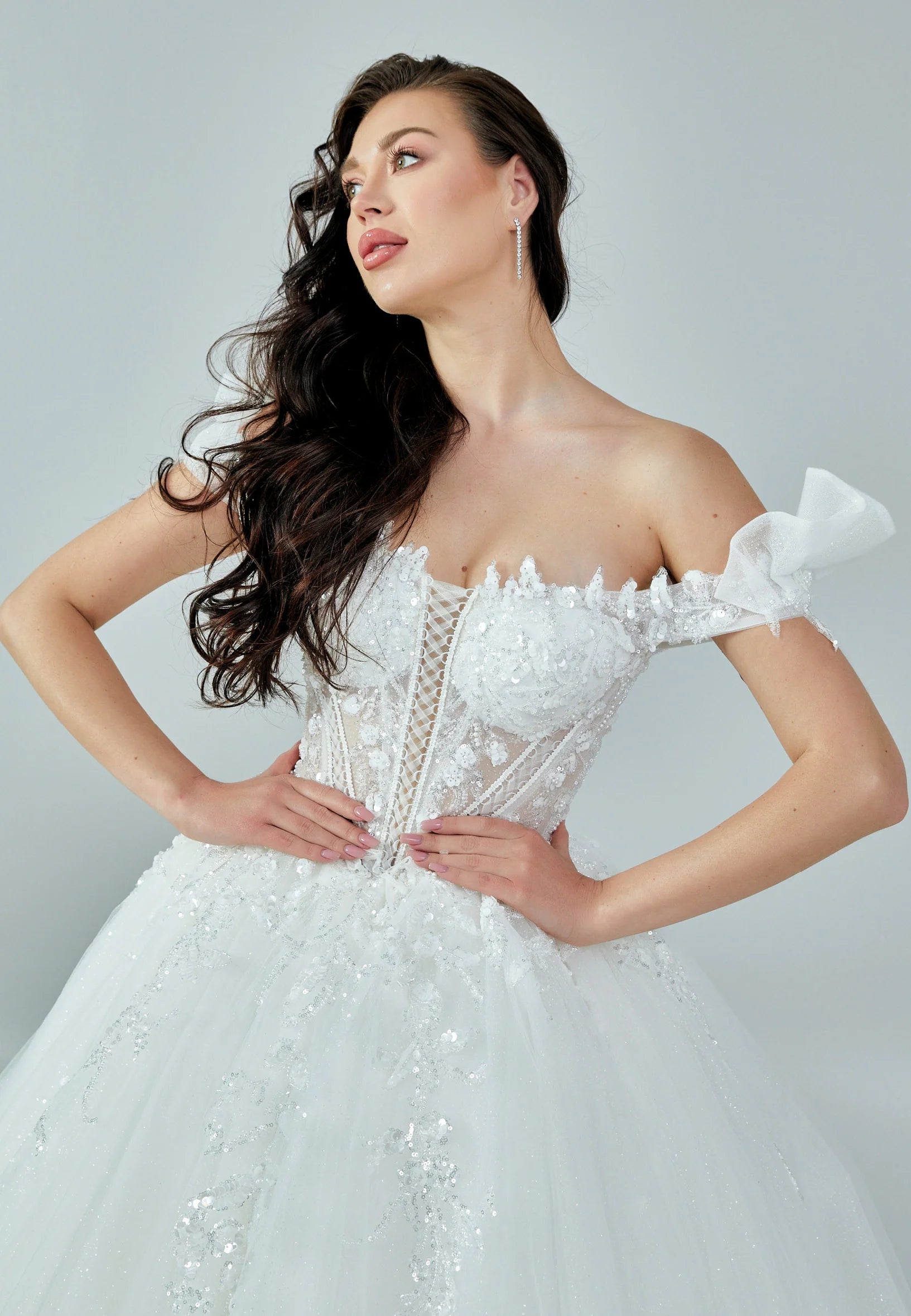 Off Shoulder Maxi Tulle Regular Wedding Dress Unit Price: €645