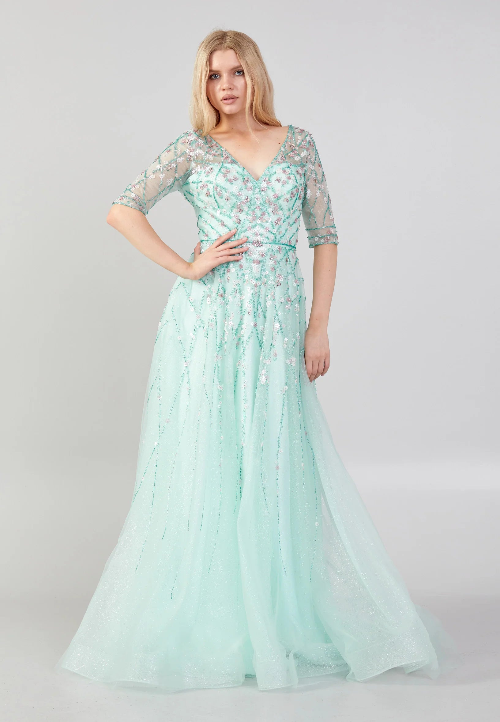 Short Sleeve Maxi Tulle A - Line Regular Prom Dress Unit Price: €85